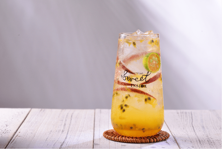 第一款西番莲汽泡,浅粉的果汁搭配凉爽的汽泡水,就连升腾的小汽泡