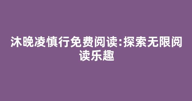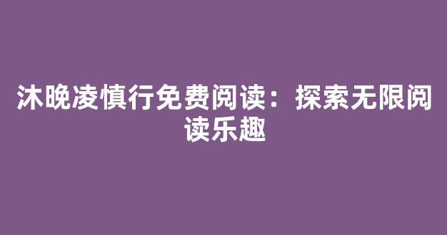 探索无限阅读乐趣:沐晚凌慎行免费阅读